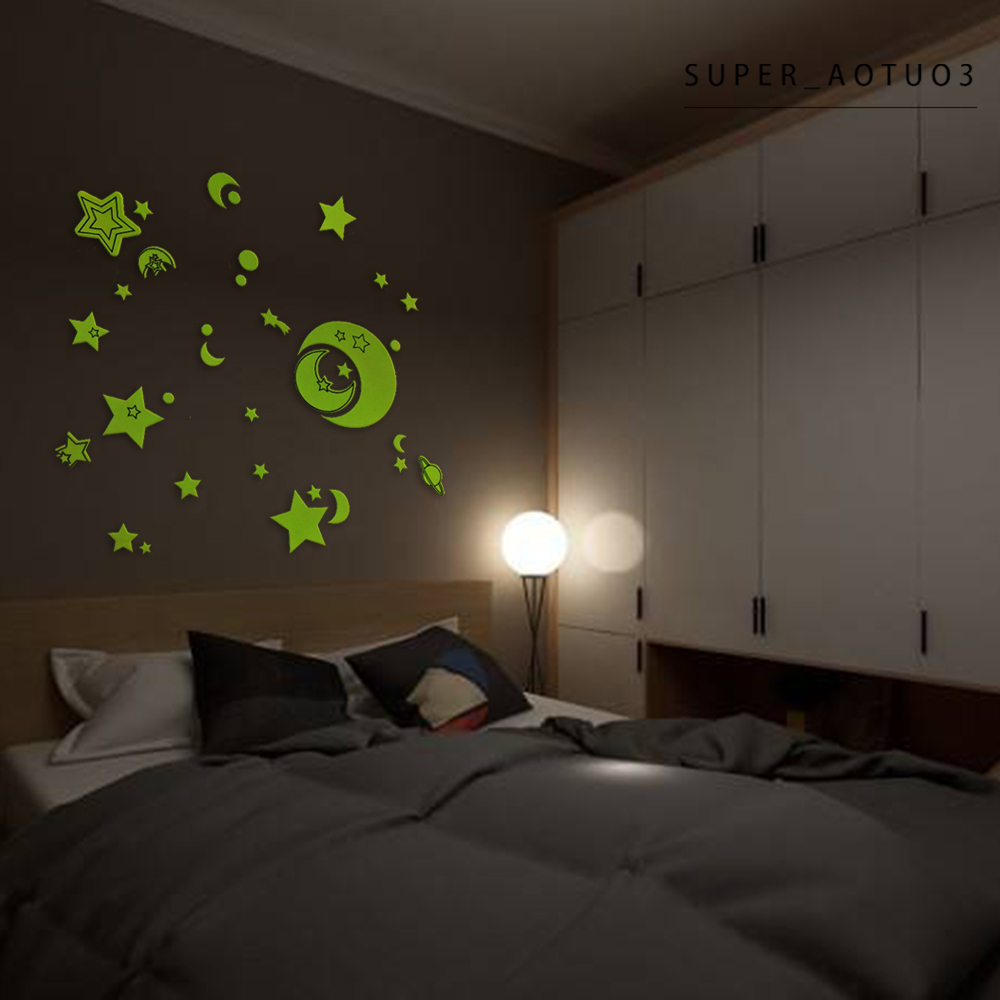 Kids Bedroom 3d Stars Glow In The Dark Wall Stickers Luminous Fluorescent Pvc Wall Art Decals Shopee Singapore