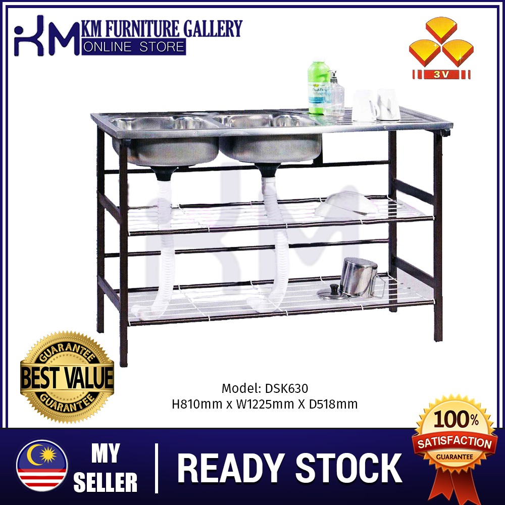 Km Furniture Dsk630 Multi Function Dual Sink Rack With 2 Tier Storage Kitchen Rack Metal Rack Rak Dapur Rak Masak Shopee Singapore