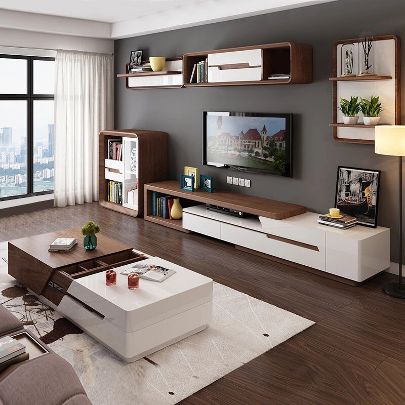 Premium Wooden Furniture Burnt Stone Top Tv Console Coffee Table Shopee Singapore